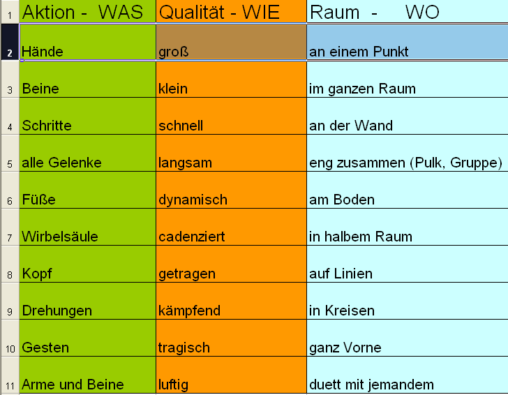 Wahl eines Tanzmusters z.B. Wirbelsäule - luftig - im halben Raum.