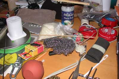 Kleine Materialien wie Holz, Plastik, Stein, Metall, Luft und eine Resonanzfläche