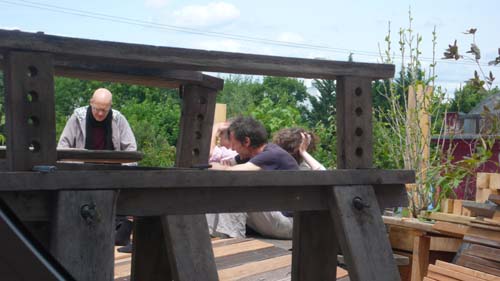 Diskussion auf der Terrasse - Rote Fabrik. Themen: Zerstörung derKultur in Deutschland im 3. Reich. Feindbilder, Quellen Ursachen (Gier und Kapital weltweit).