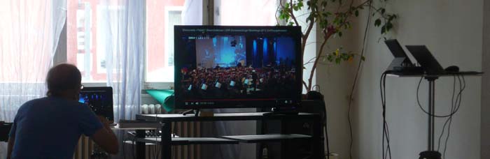 Als erstes handelt es sich um das gewaltige Stück „Trio“ von dem Dänen Simon Steen-Andersen. Dieses ist für Symphonieorchester, großen Chor - konfrontiert mit einer Bigband und in Beziehung zu historischen Filmaufnahmen von Konzerten etc. gesetzt. Es gewann dort den renommierten Orchesterpreis des SWR 2019.