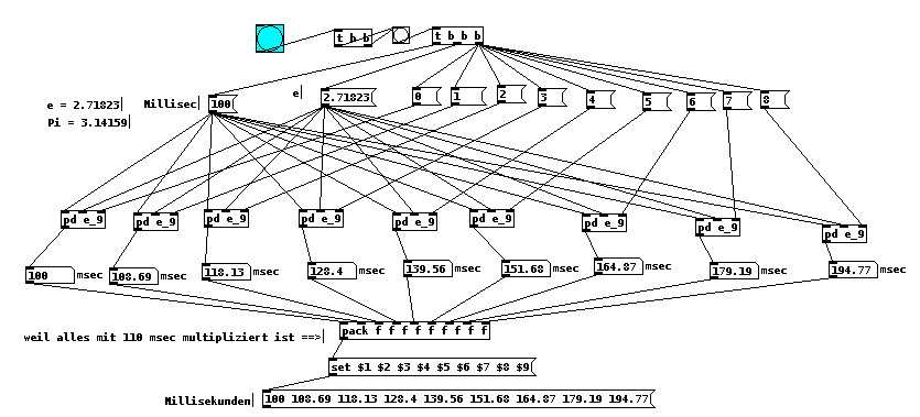 2,71823.... = Eulersche Zahl und die Basis des natürlichen Logarithmus, n = Zahlenfolge z.B. 0, 1, 2, 3, ....8 = natürliche Zahlen ==> hieraus entsteht die Taktzeitenfolge: