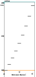100 108.68 118.13 128.39 139.55 151.68 164.86 179.18 194.75 [msec] für die 9 Metronome.